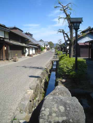 街道中心に用水路が流れている。「上善水の如し」